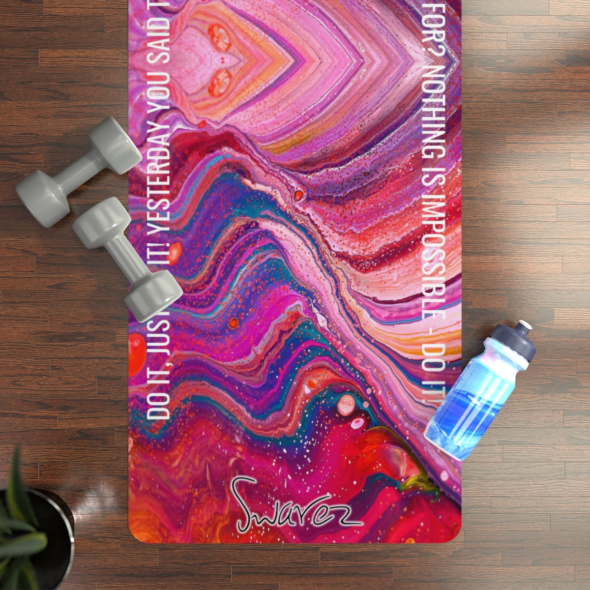 Rubber Yoga Mat - DO IT! Quote, Cosmic design