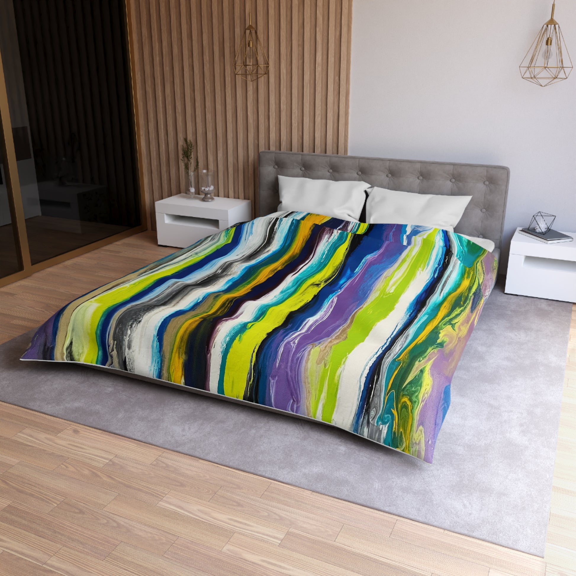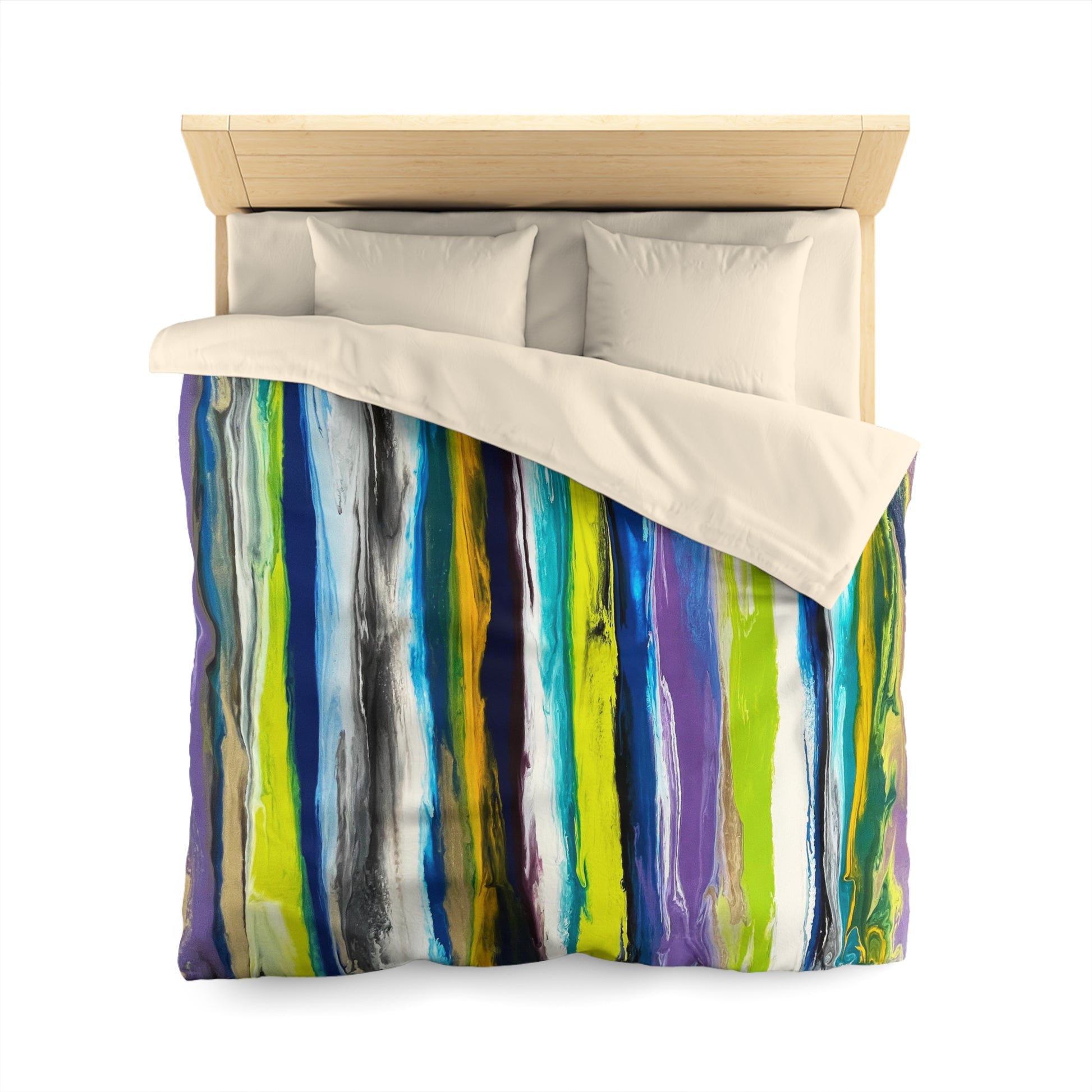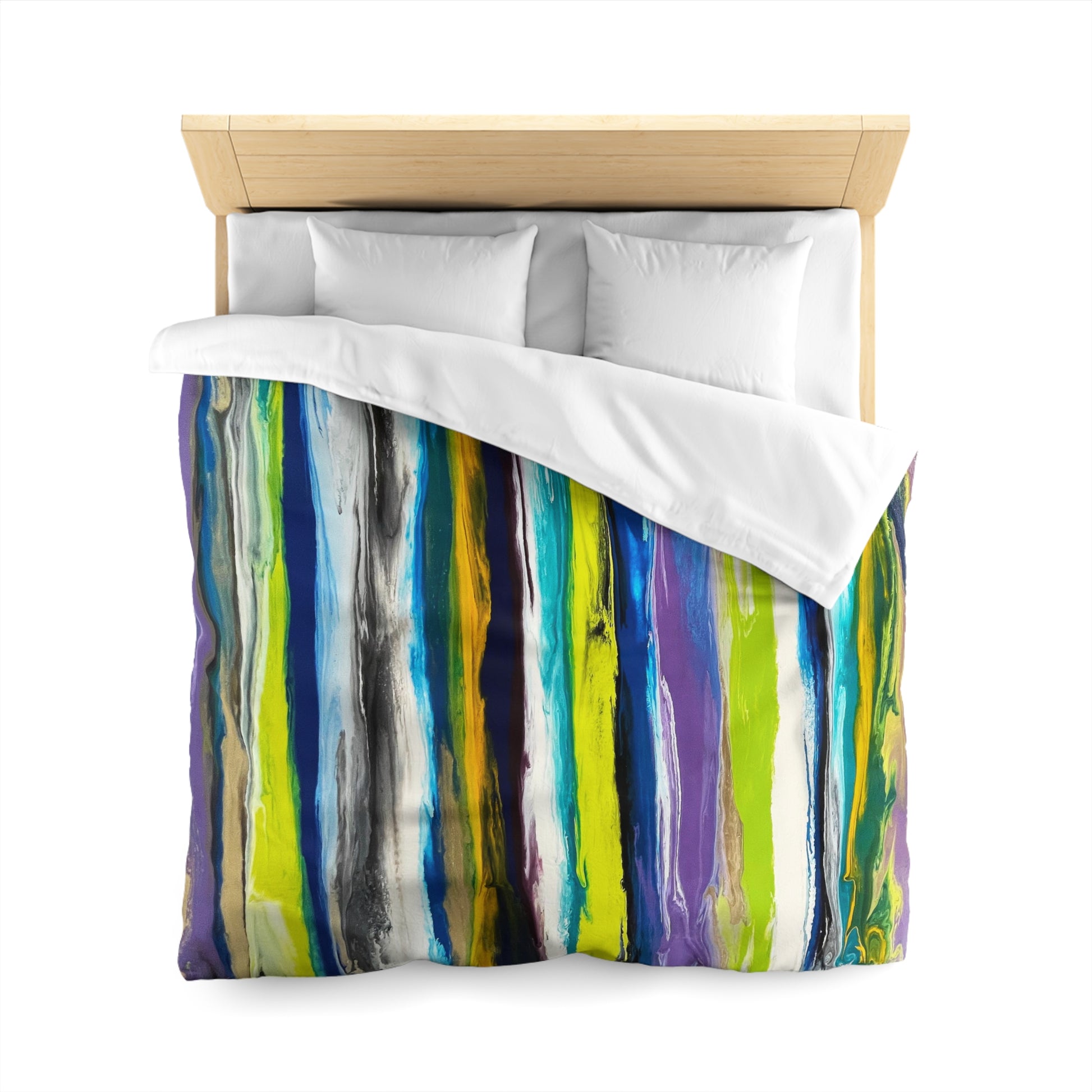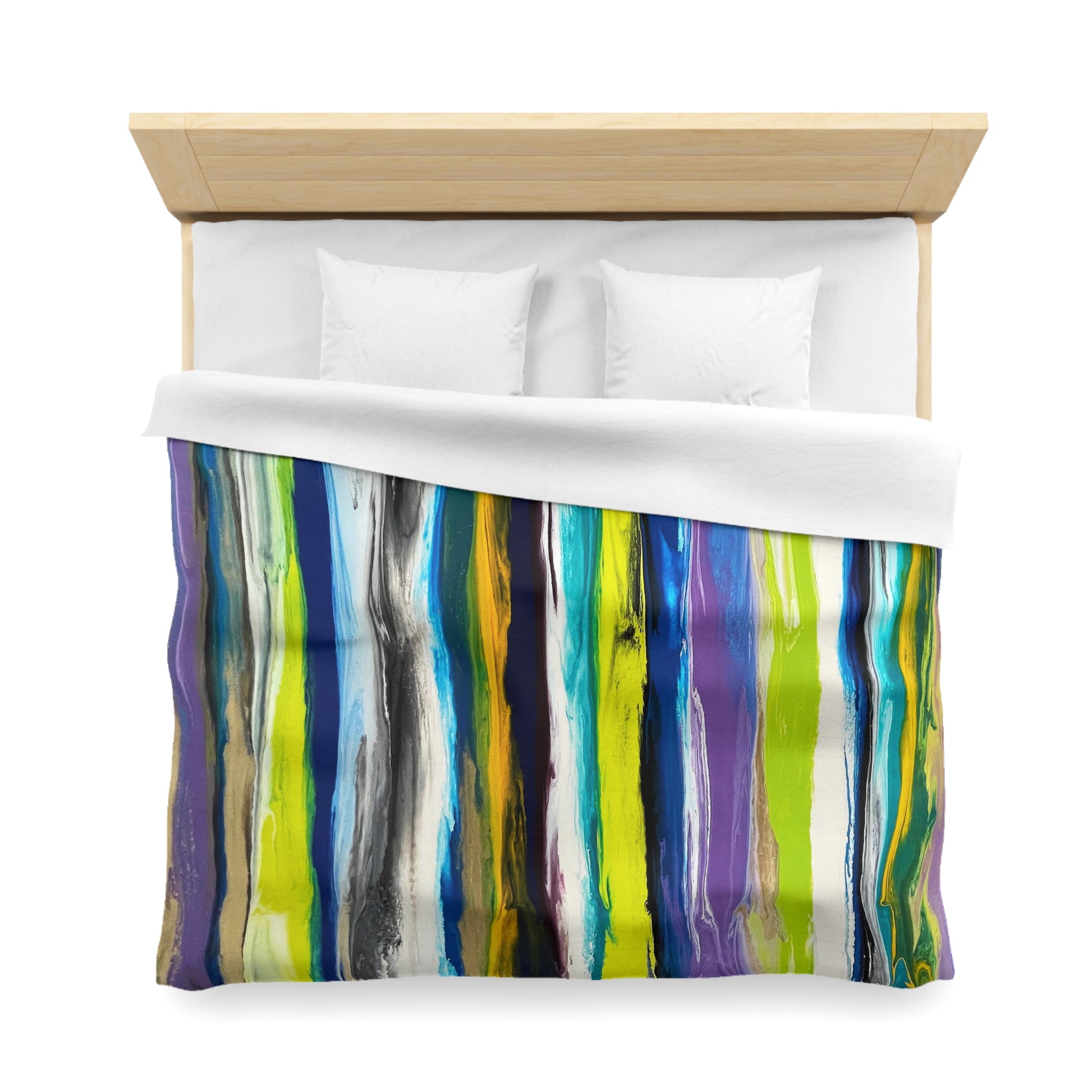 Abstract Microfiber Duvet with Multi color green and blue stripes