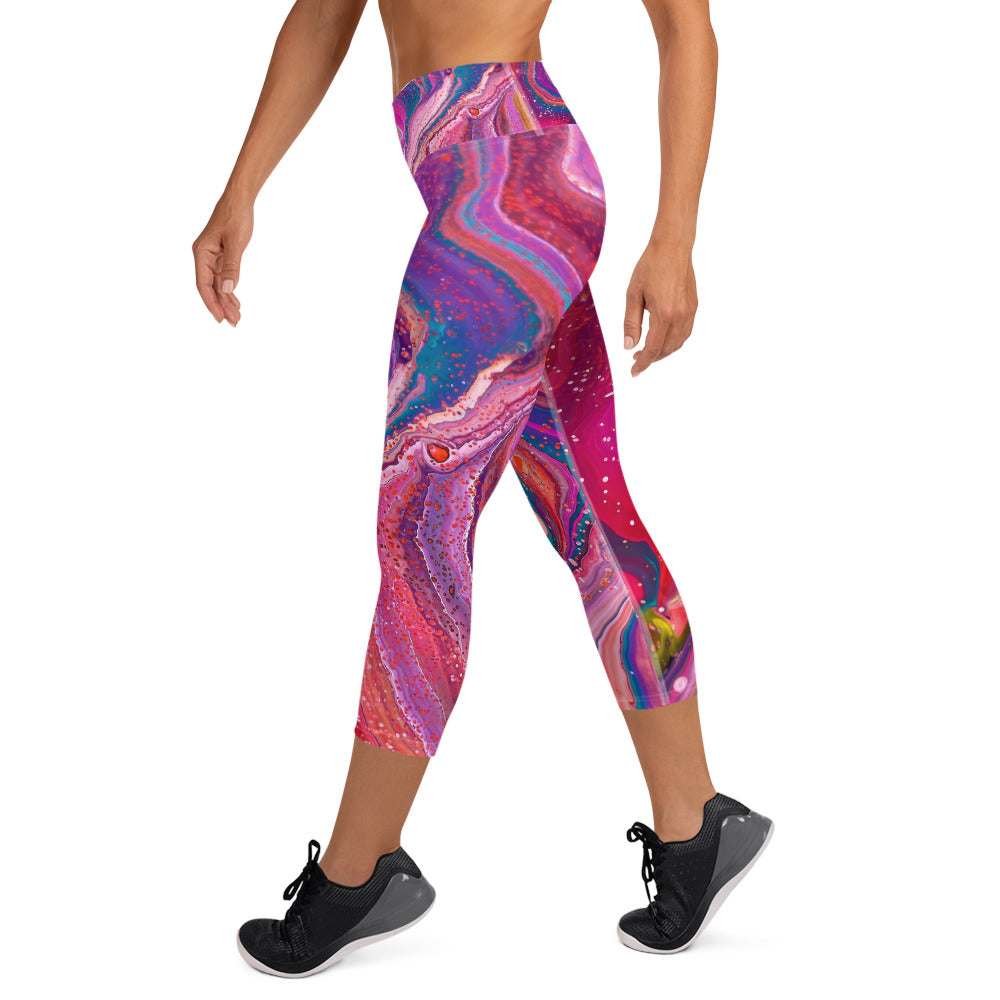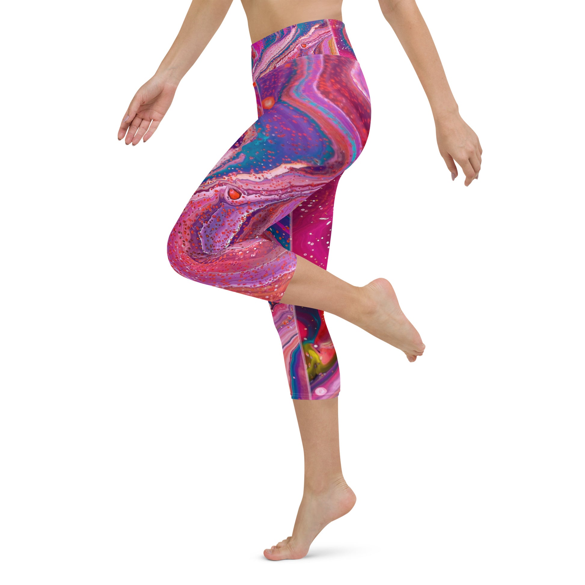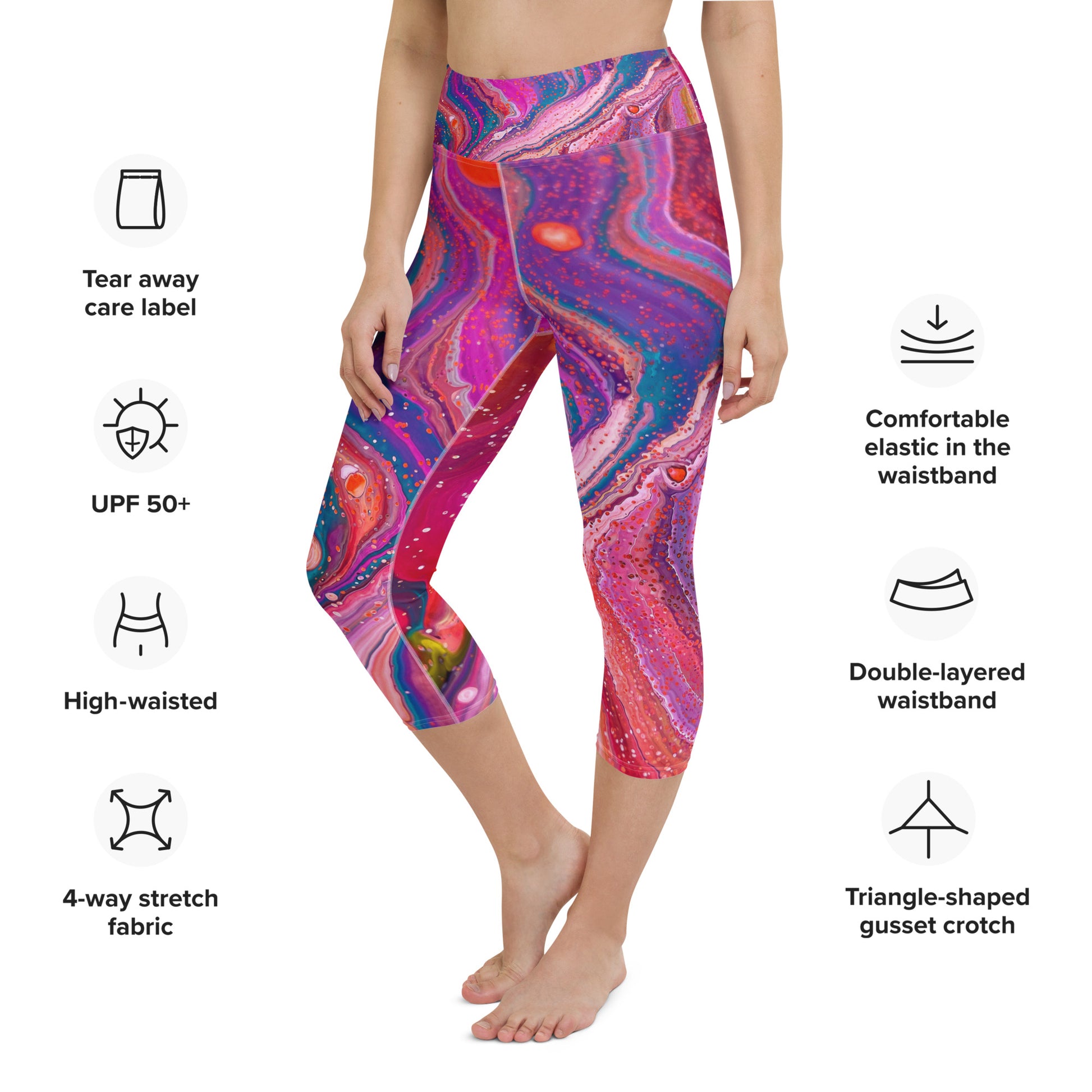 These yoga capri leggings with a high, elastic waistband are the perfect choice for yoga, the gym, or simply a comfortable evening at home.